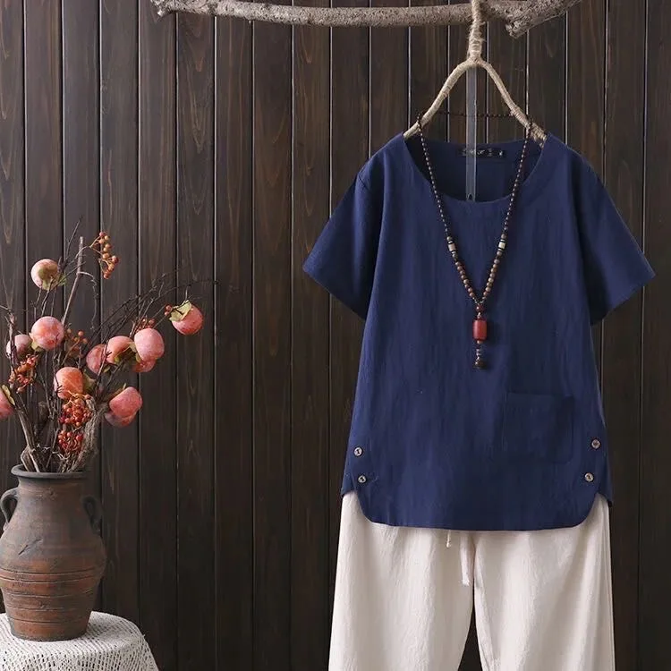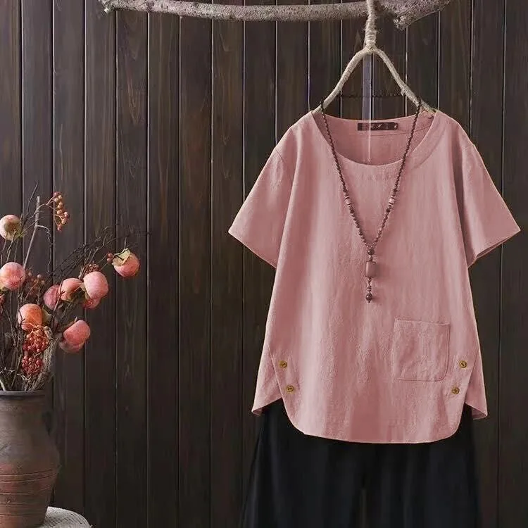 O design de gola redonda adiciona um toque de elegância, tornando este t-shirt uma peça essencial no guarda-roupa de qualquer mulher.