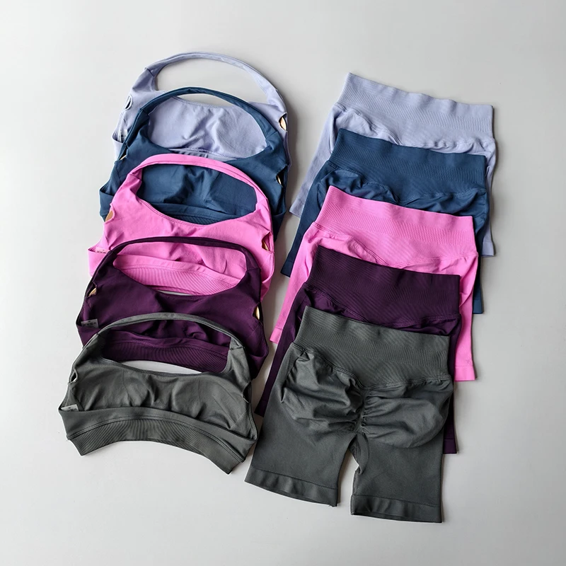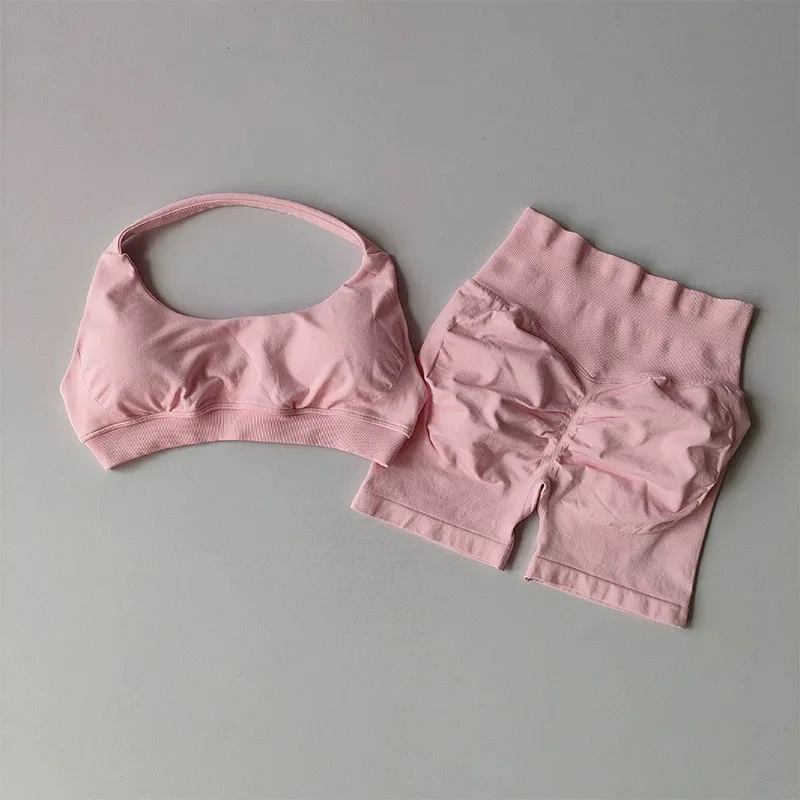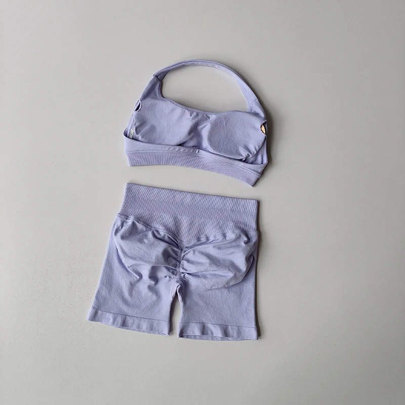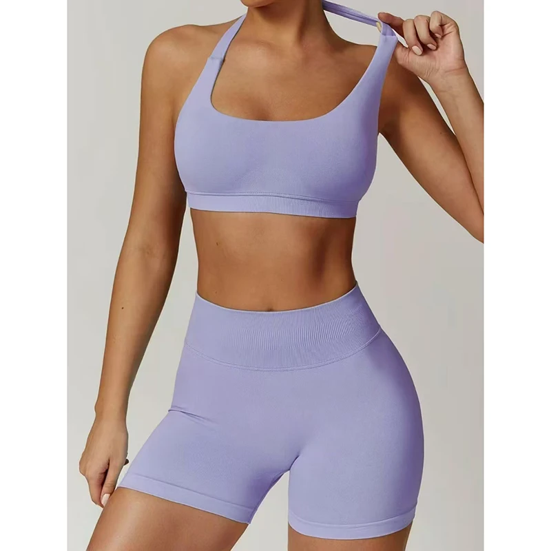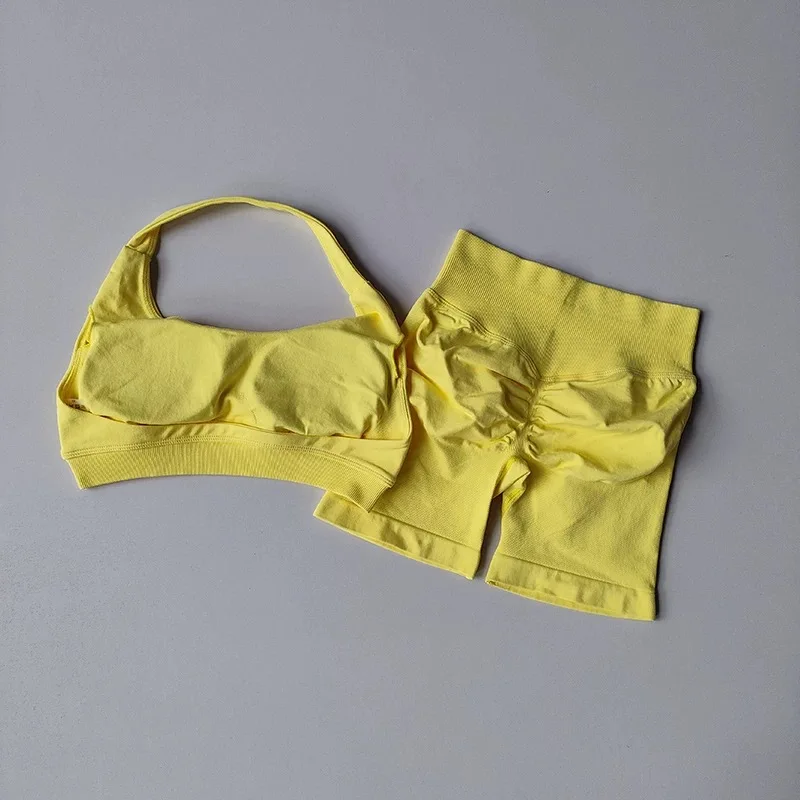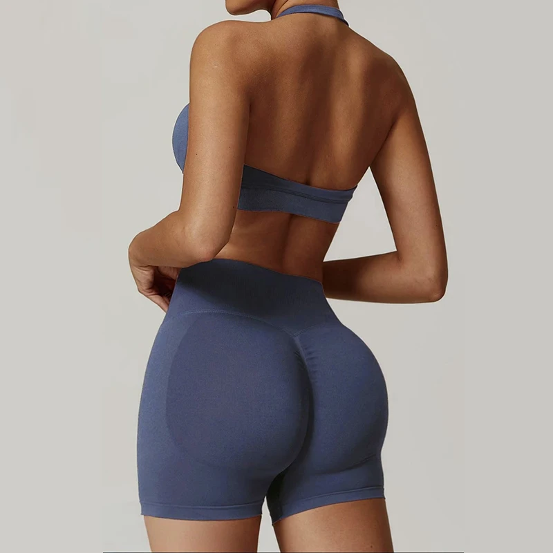 Conjunto de exercícios de ioga de venda quente com pescoço pendurado e design de costas expostas, exibição sexy de costas com borboleta